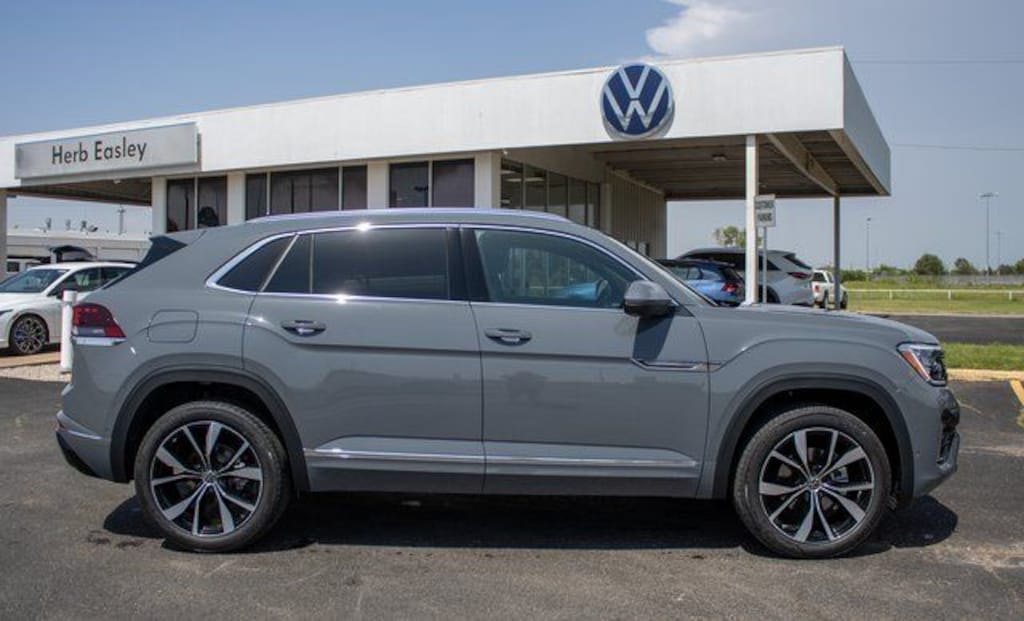 Pure Gray 2025 Volkswagen Atlas Cross Sport 2.0T SEL Premium R-Line AWD 8-Speed Automatic with Tiptronic 2.0L TSI Lifetime Powertrain Warranty, $10 Oil Changes for Life, Car Washes for Life, Texas Inspection Stickers for Life.