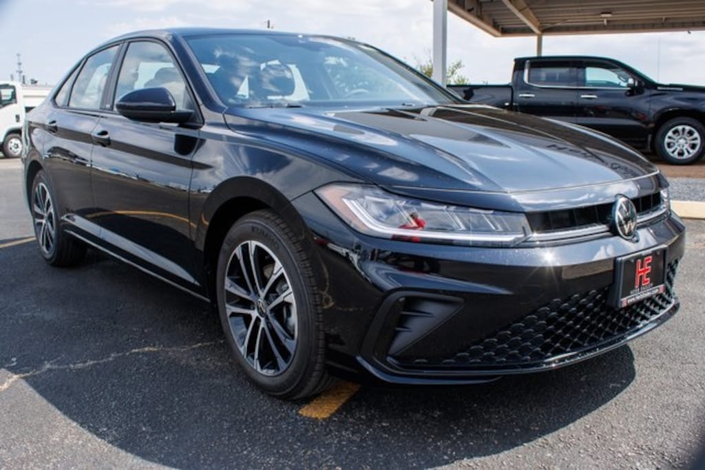 Deep Black Pearl 2025 Volkswagen Jetta 1.5T Sport FWD 8-Speed Automatic with Tiptronic 1.5L I-4 DI DOHC Turbocharged Lifetime Powertrain Warranty, $10 Oil Changes for Life, Car Washes for Life, Texas Inspection Stickers for Life, Titan Black Cloth.