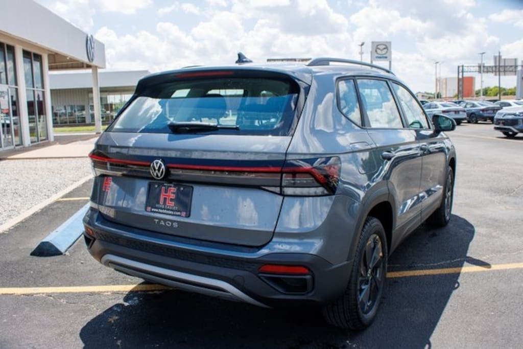 Gray 2025 Volkswagen Taos 1.5T S FWD 8-Speed Automatic with Tiptronic 1.5L I4 Turbocharged DOHC 16V LEV3-SULEV30 174hp Lifetime Powertrain Warranty, $10 Oil Changes for Life, Car Washes for Life, Texas Inspection Stickers for Life.