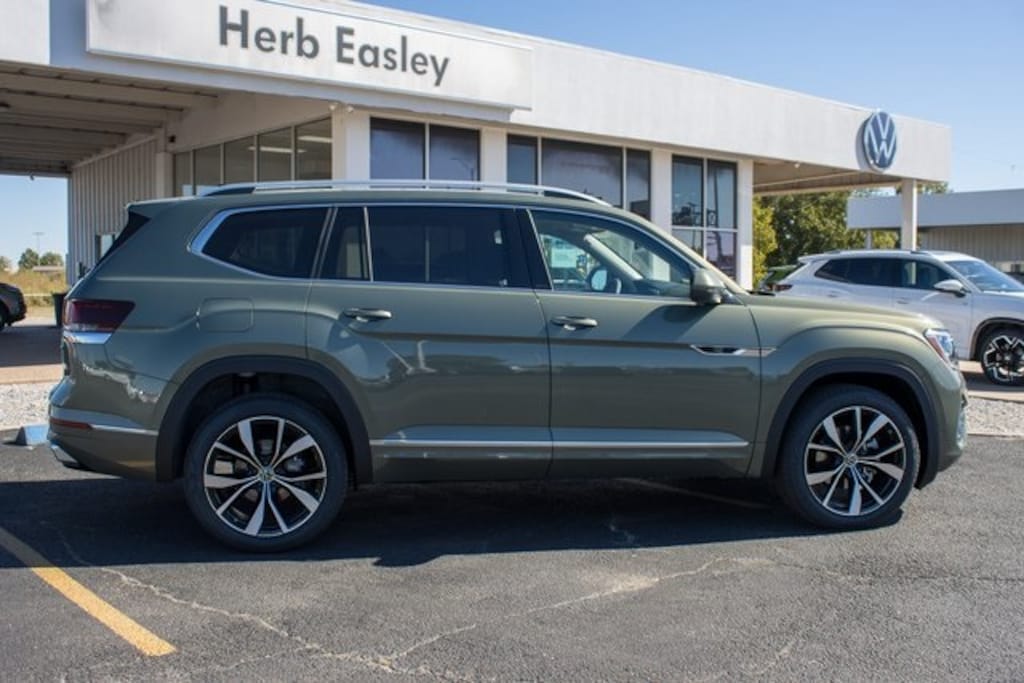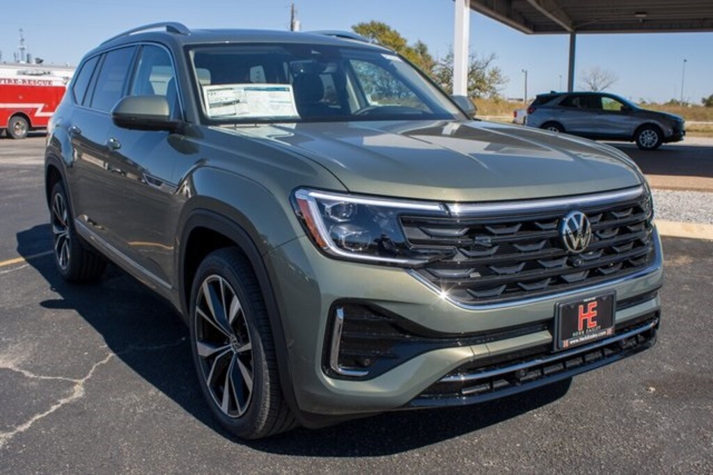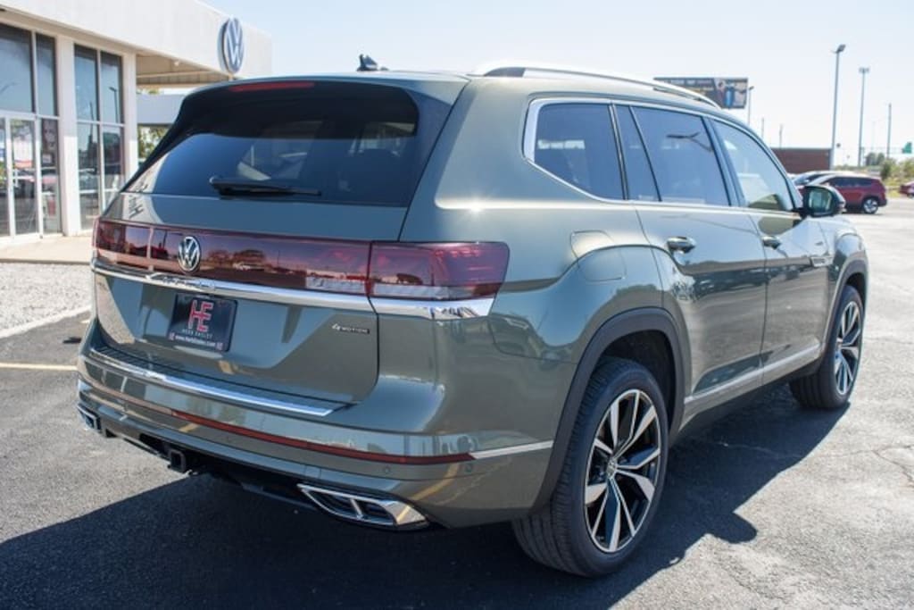 Green 2026 Volkswagen Atlas 2.0T SEL Premium R-Line AWD 8-Speed Automatic with Tiptronic 2.0L TSI Lifetime Powertrain Warranty, $10 Oil Changes for Life, Car Washes for Life, Texas Inspection Stickers for Life.