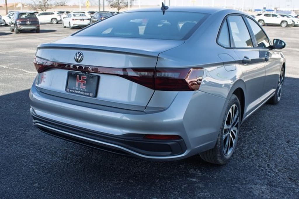 Silver 2026 Volkswagen Jetta 1.5T Sport FWD 8-Speed Automatic with Tiptronic 1.5L I-4 DI DOHC Turbocharged Lifetime Powertrain Warranty, $10 Oil Changes for Life, Car Washes for Life, Texas Inspection Stickers for Life, Black Cloth.
