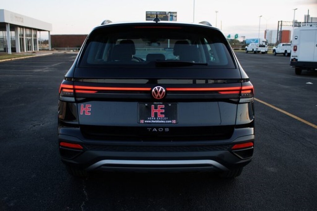 Black 2026 Volkswagen Taos 1.5T S FWD 8-Speed Automatic with Tiptronic 1.5L I4 Turbocharged DOHC 16V LEV3-SULEV30 174hp Lifetime Powertrain Warranty, $10 Oil Changes for Life, Car Washes for Life, Texas Inspection Stickers for Life.