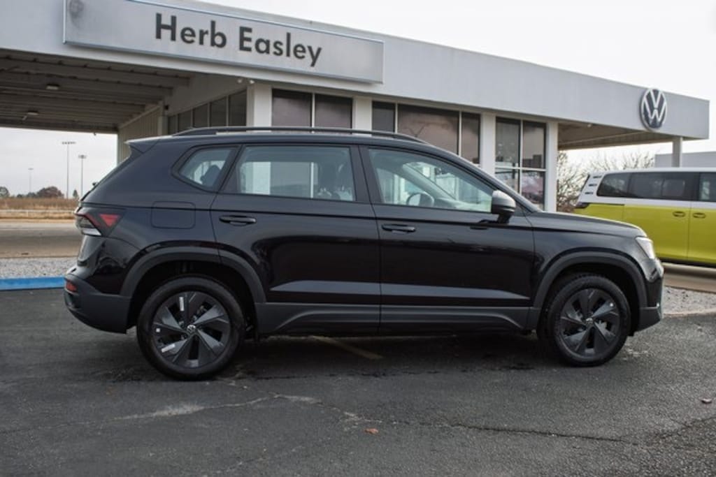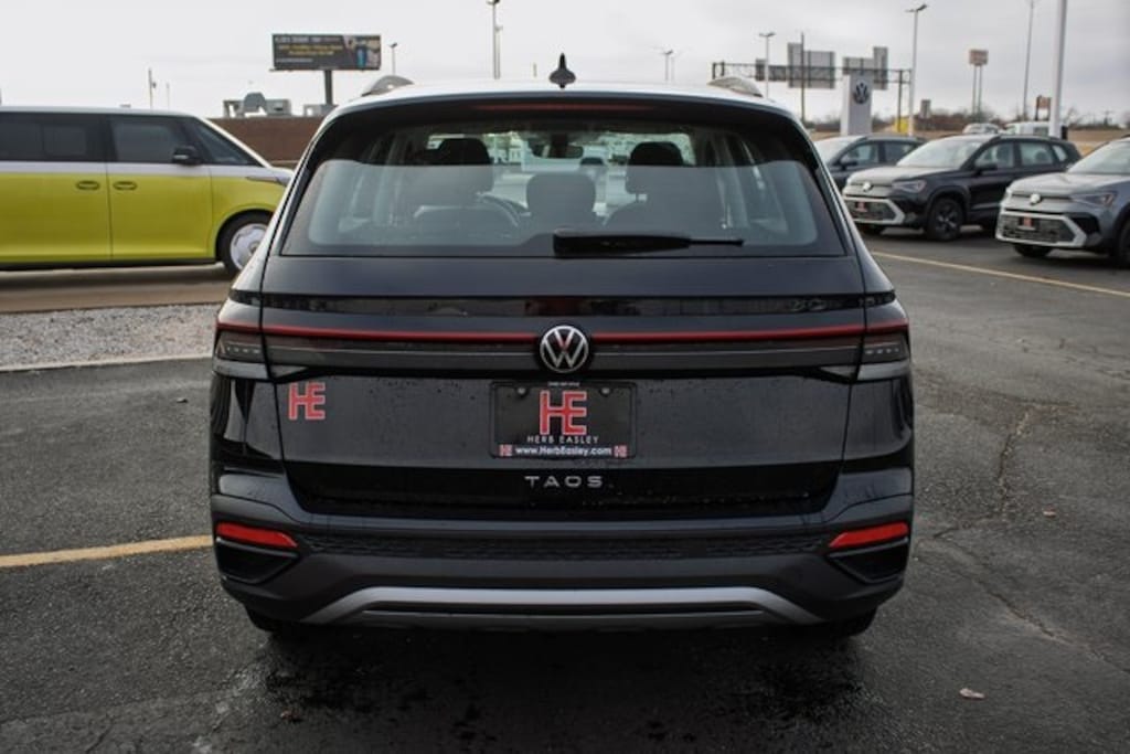 Black 2026 Volkswagen Taos 1.5T S FWD 8-Speed Automatic with Tiptronic 1.5L I4 Turbocharged DOHC 16V LEV3-SULEV30 174hp Lifetime Powertrain Warranty, $10 Oil Changes for Life, Car Washes for Life, Texas Inspection Stickers for Life.