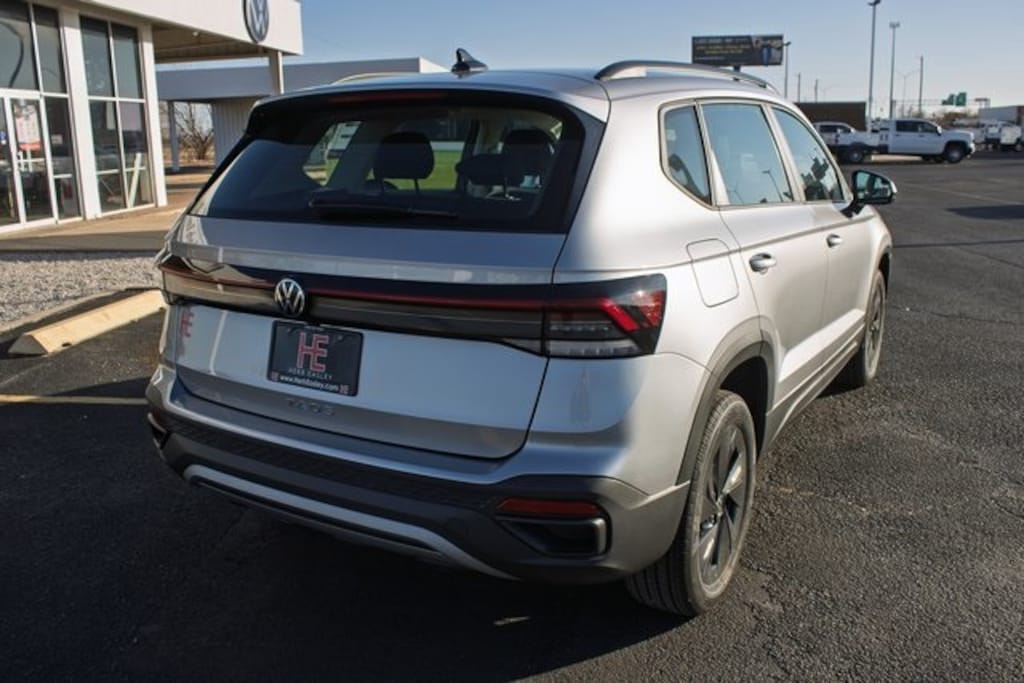 Silver 2026 Volkswagen Taos 1.5T S FWD 8-Speed Automatic with Tiptronic 1.5L I4 Turbocharged DOHC 16V LEV3-SULEV30 174hp Lifetime Powertrain Warranty, $10 Oil Changes for Life, Car Washes for Life, Texas Inspection Stickers for Life.