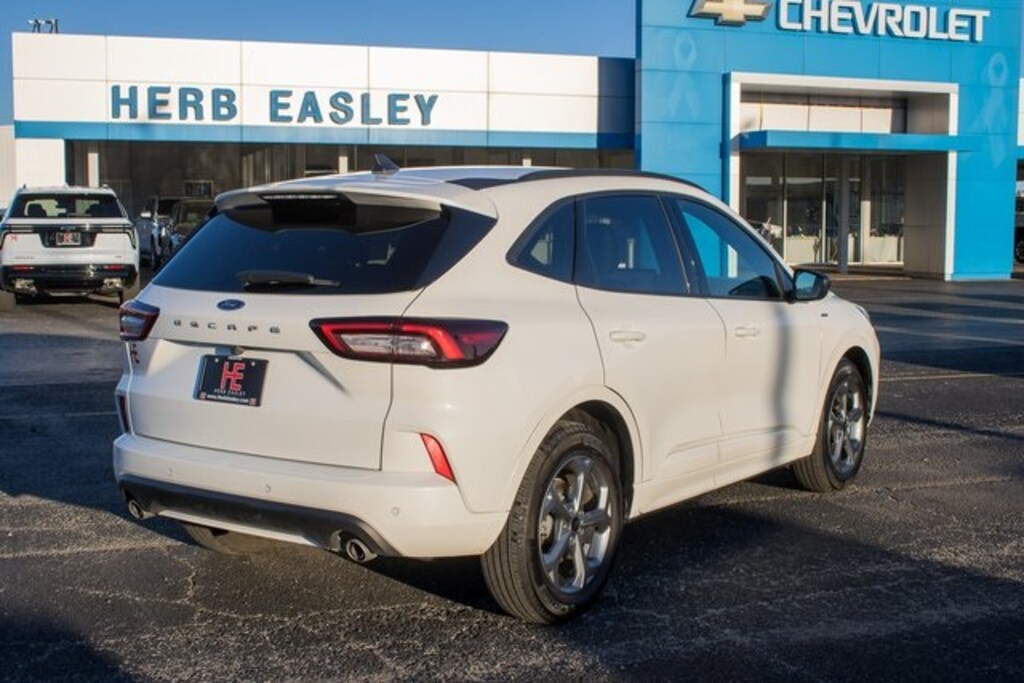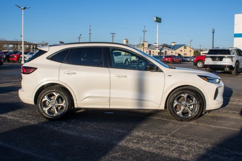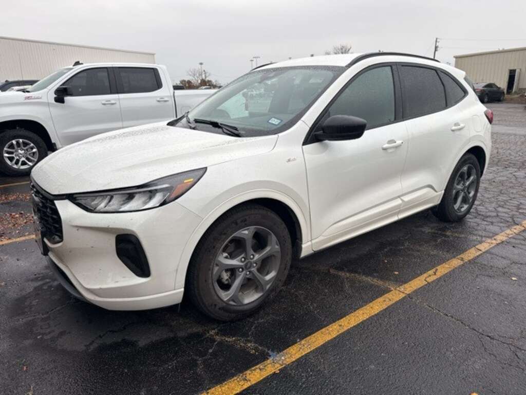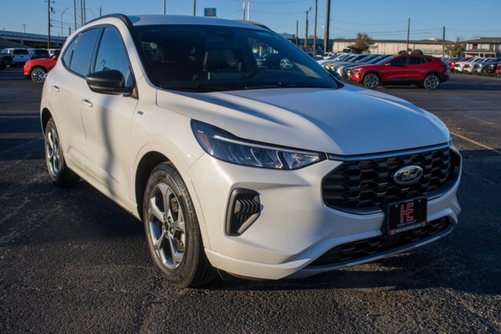 Star White Metallic Tri-Coat 2024 Ford Escape ST-Line FWD 8-Speed Automatic 1.5L EcoBoost Lifetime Powertrain Warranty, $10 Oil Changes for Life, Car Washes for Life, Texas Inspection Stickers for Life, Escape ST-Line, 4D Sport Utility, 1.5L EcoBoost, 8-Speed Automatic, FWD, 3.81 Axle Ratio, 4-Wheel Disc Brakes, 6 Speakers, ABS brakes, Adaptive Cruise Control w/Stop-and-Go, Air Conditioning, Alloy wheels, AM/FM radio: SiriusXM, AM/FM Stereo, Auto High-beam Headlights, Automatic temperature control, Brake assist, Bumpers: body-color, Cold Weather Package, Compass, Connected Navigation, Delay-off headlights, Driver door bin, Driver vanity mirror, Dual front impact airbags, Dual front side impact airbags, Electronic Stability Control, Emergency communication system: SYNC 4 911 Assist, Equipment Group 300A, Exterior Parking Camera Rear, Ford Co-Pilot360 Assist+, FordPass Connect, Four wheel independent suspension, Front anti-roll bar, Front Bucket Seats, Front Center Armrest, Front dual zone A/C, Front License Plate Bracket, Front reading lights, Fully automatic headlights, Heated Front Row Seats, Heated Sideview Mirrors, Heated Steering Wheel, Illuminated entry, Knee airbag, Low tire pressure warning, Occupant sensing airbag, Outside temperature display, Overhead airbag, Overhead console, Panic alarm, Passenger door bin, Passenger vanity mirror, Power door mirrors, Power driver seat, Power Liftgate, Power steering, Power windows, Radio data system, Rear anti-roll bar, Rear Parking Sensor, Rear reading lights, Rear seat center armrest, Rear window defroster, Rear window wiper, Rear-View Camera, Remote keyless entry, Remote Starter System, Roof rack: rails only, Speed control, Speed Sign Recognition, Speed-sensing steering, Speed-Sensitive Wipers, Split folding rear seat, Spoiler, Sport steering wheel, Steering wheel mounted audio controls, SYNC 4, SYNC 4 w/Enhanced Voice Recognition, Tachometer, Tech Pack #1, Telescoping steering wheel, Tilt steering wheel, Traction control, Trip computer, Variably intermittent wipers, Vinyl/Cloth Front Sport Contour Bucket Seats, Wheels: 18" Rock Metallic Painted Aluminum.